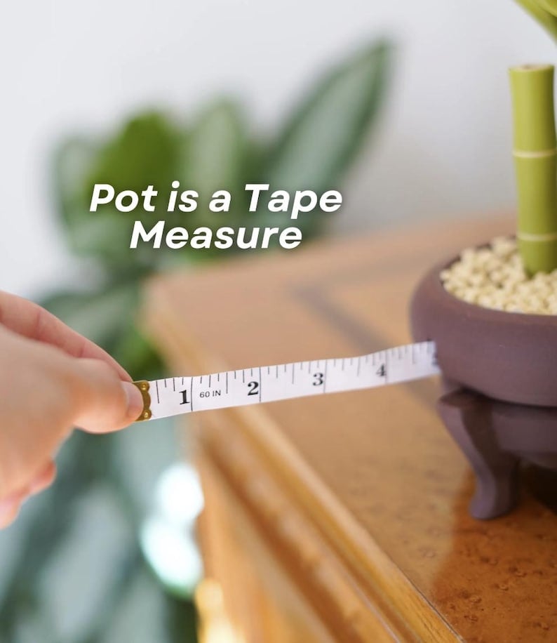 🔹 Pot Tape Measure – The bamboo pot doubles as a 60” tape measure, retracting smoothly just like a traditional tape measure.