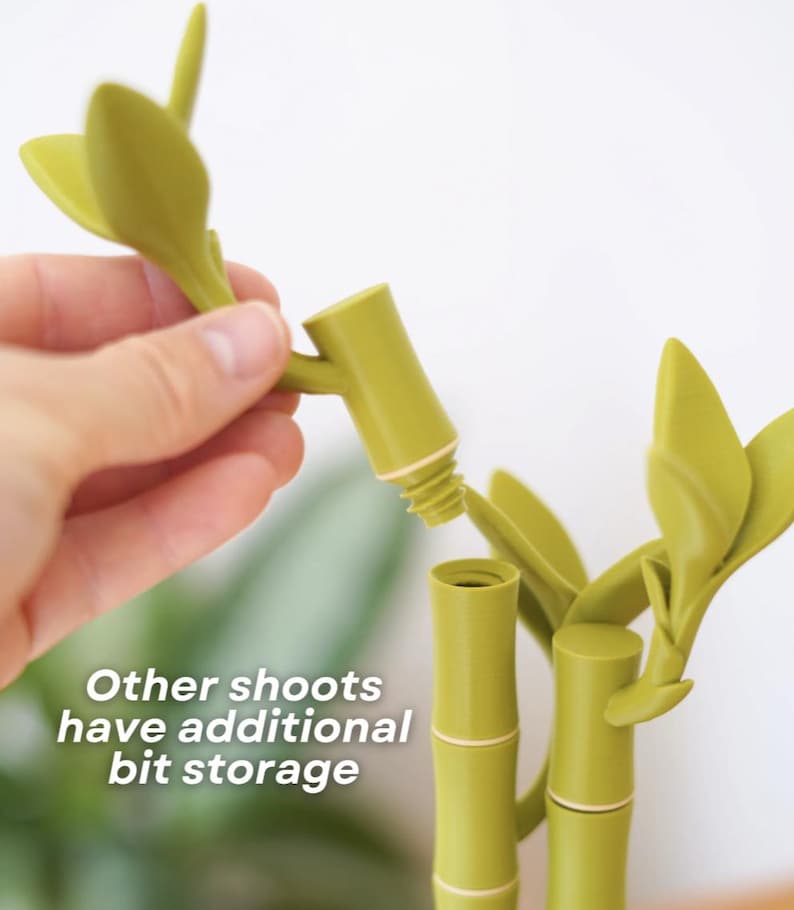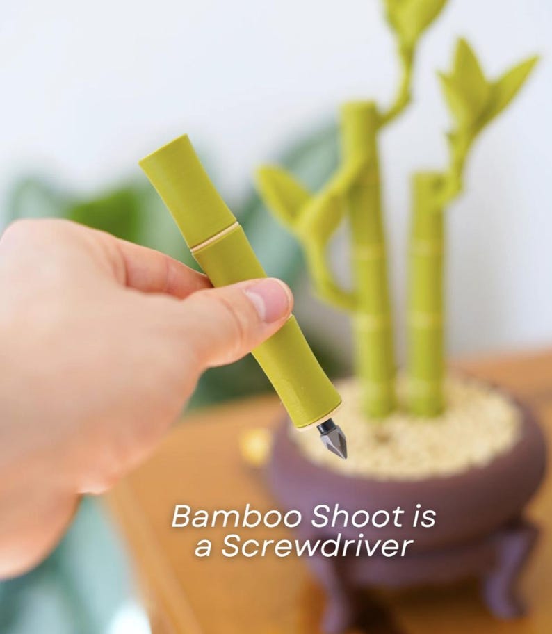 🔹 Shoot Screwdriver – One of the bamboo shoots is actually a hidden screwdriver! It holds four interchangeable bits (Phillips & Flathead) that swap easily with built-in magnetic slots. Note: Not meant for heavy-duty drilling.
